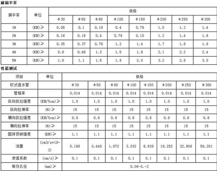 軟式排水管是一種具有倒濾排水作用的新型管材,它克服了其他排水管材的諸多弊病,因其產(chǎn)品獨特的設(shè)計原理和構(gòu)成材料的優(yōu)良性能,它排、滲水效果強,利用“毛細”現(xiàn)象和“虹吸”原理、集吸水、透水、排水為一體,具有工程設(shè)計要求的耐壓、透水及反濾作用。不因地質(zhì)、地理溫度變化而發(fā)生斷裂,并可達到排放潔凈水的效果,不會對環(huán)境造成二次污染,屬于新型環(huán)保產(chǎn)品。其施工簡便,無接頭,對地質(zhì)、地形無特殊要求,任何需要用暗排水的地方都可以隨心所欲地使用。